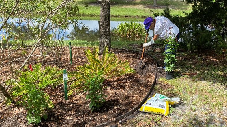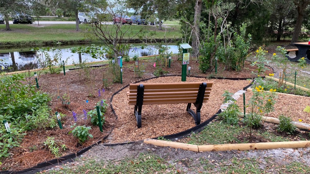 Did you know there is a Butterfly Garden in Suseda Park at 5805 Murrell Road in Viera Florida? Here’s where the story begins. It was planted in 2014 and is in need of some major updating. We have started with the cleanup and the ground preparation for new plants. On July 26, 2022 the VECA board Viera East Community Association approved revitalizing the old garden. These new improvements are to include a new mulched walk way done by the Boy Scouts, new bench, upgraded sprinkler system, signs noting the garden, and of course new plants. This should be a peaceful place to come and set and watch the day fly by. Now this is where you come in. Do you have any gardening experience and would like to share it with our community. We are in need of a few people that would like to help plant the new flowers and bushes. If you feel you can help please private message me. List of the persons whom have already given products to garden. This was at no cost to VECA. Pastor Myer Has given wood chips and ground mulch. Ken Peck Delivered one truck load of ground mulch to the garden. Verdescape Landscaping Landscape cloth. OurVieraEast.com Signs for the garden, Butterfly puddling station and upgraded the sprinkle system.