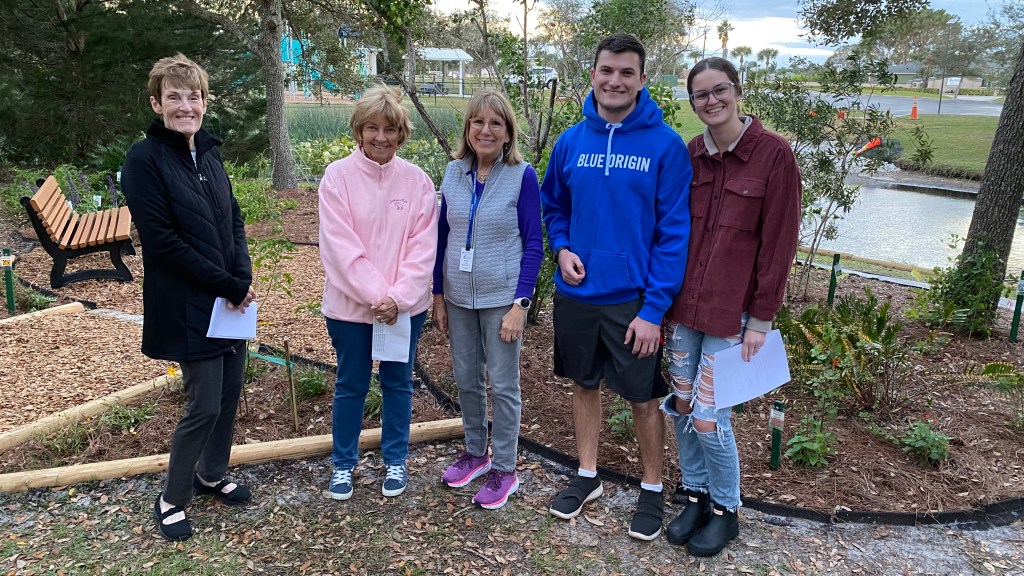 Below are a few of the volunteers that meant on January 13, 2023 to go over the update on the lower garden. From left to right Joan, Debby, Lisa, Matt and Hannah. Look for this to happen this spring.