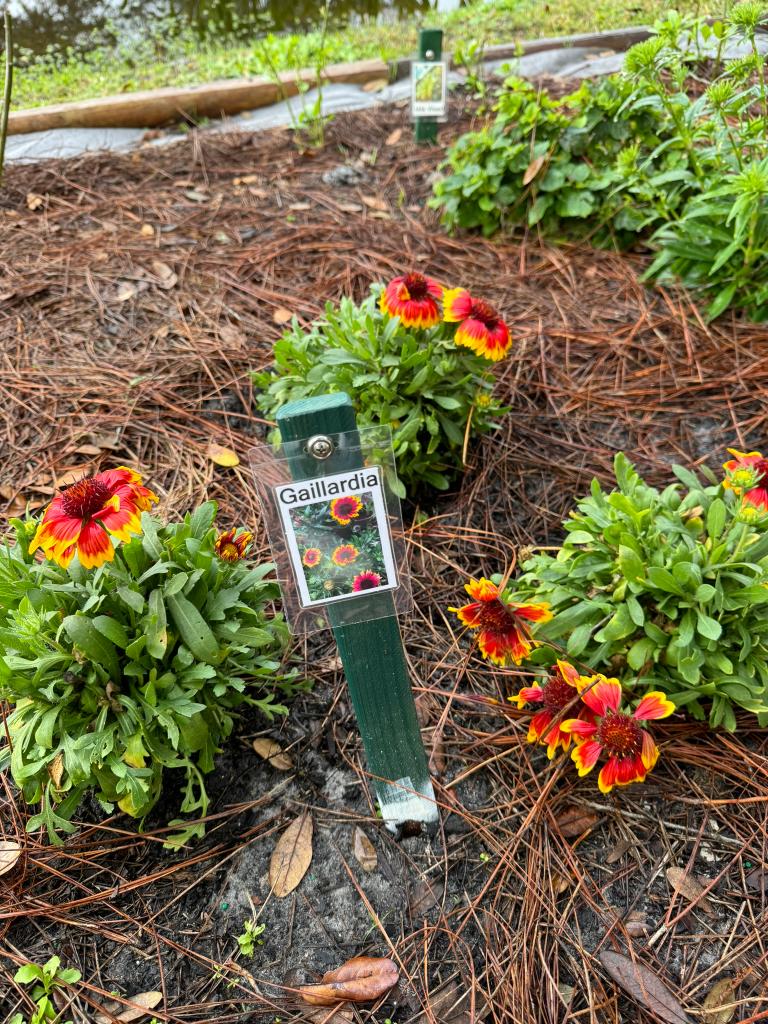 New flowers are going into the garden to add a little color this winter. The signs has been updated. As you can see from this view, the ground cover has been laid either end of the garden to get ready for wildflowers and 6 to 8 weeks. Thanks to several of the volunteers that do the work. We have had a beautiful garden this past year. Come, and watch the butterflies. Enjoy the flowers and ponder the day away.