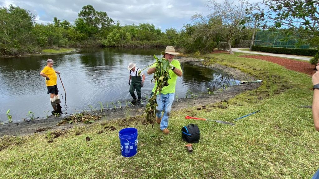 Pictured here along the walking trail at Club House Park is the new Latourell shelf put in by the Brevard County Natural Resource Department and the Wetland Ranger Volunteers. The concept is to maintain lake bank and filtration system from fertilizer. That should give us cleaner lakes.